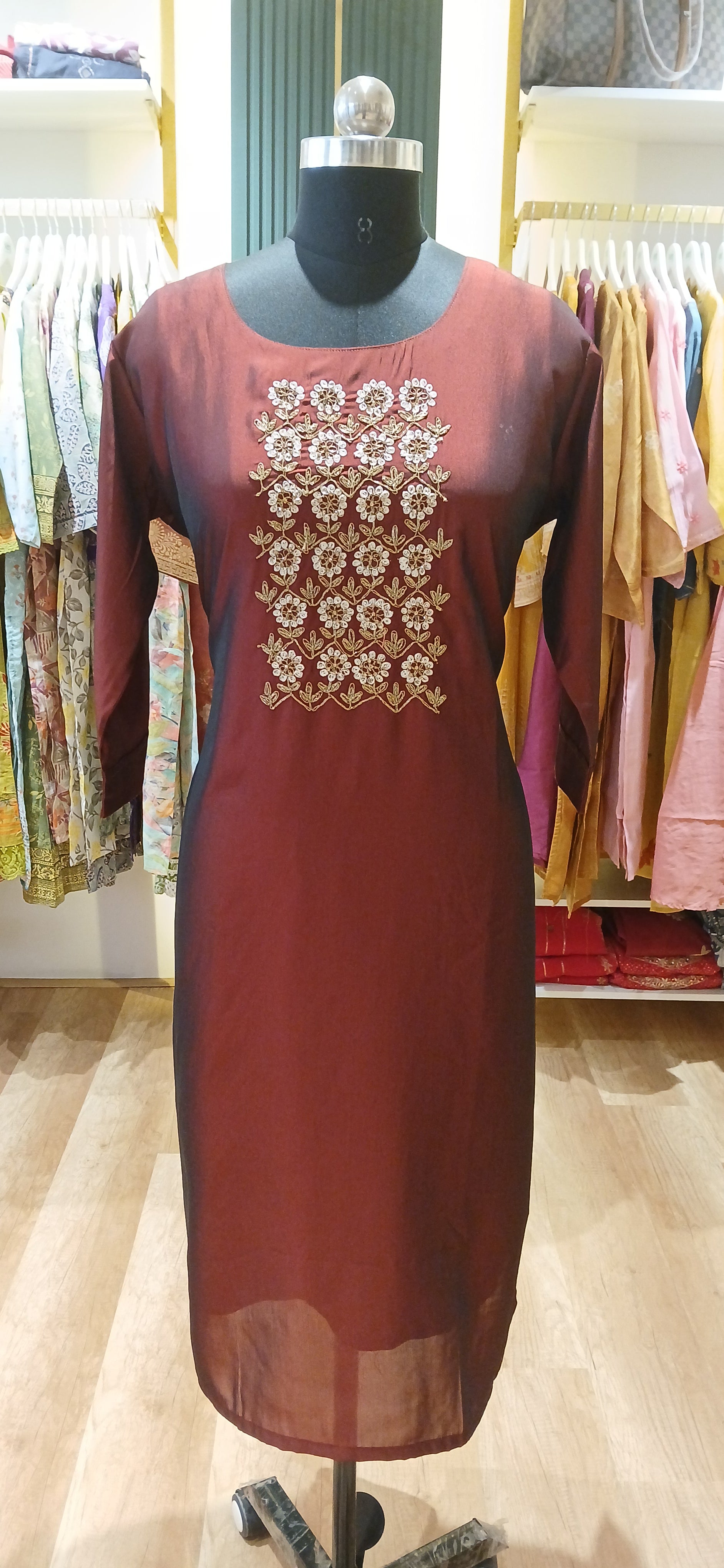 Shimmer silk fabric with sequence work