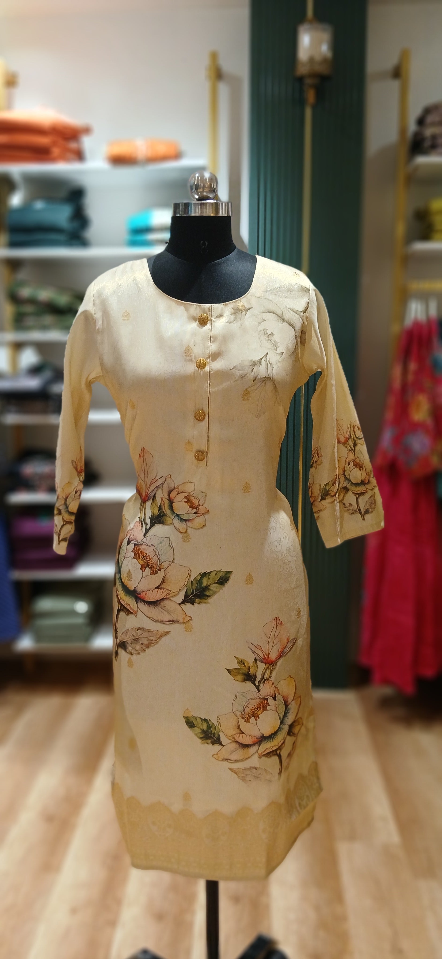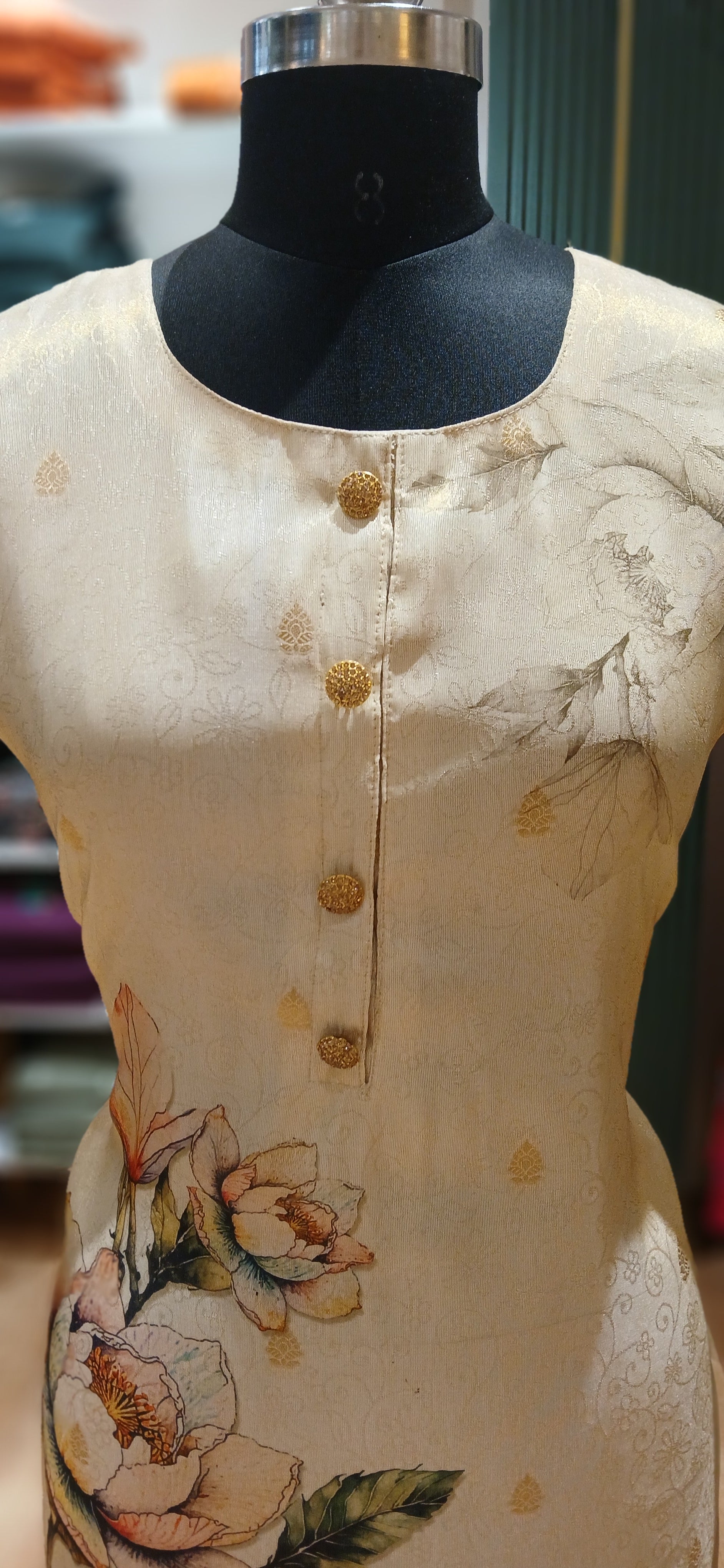 Silk cotton fabric with elegant self designed Kurtis