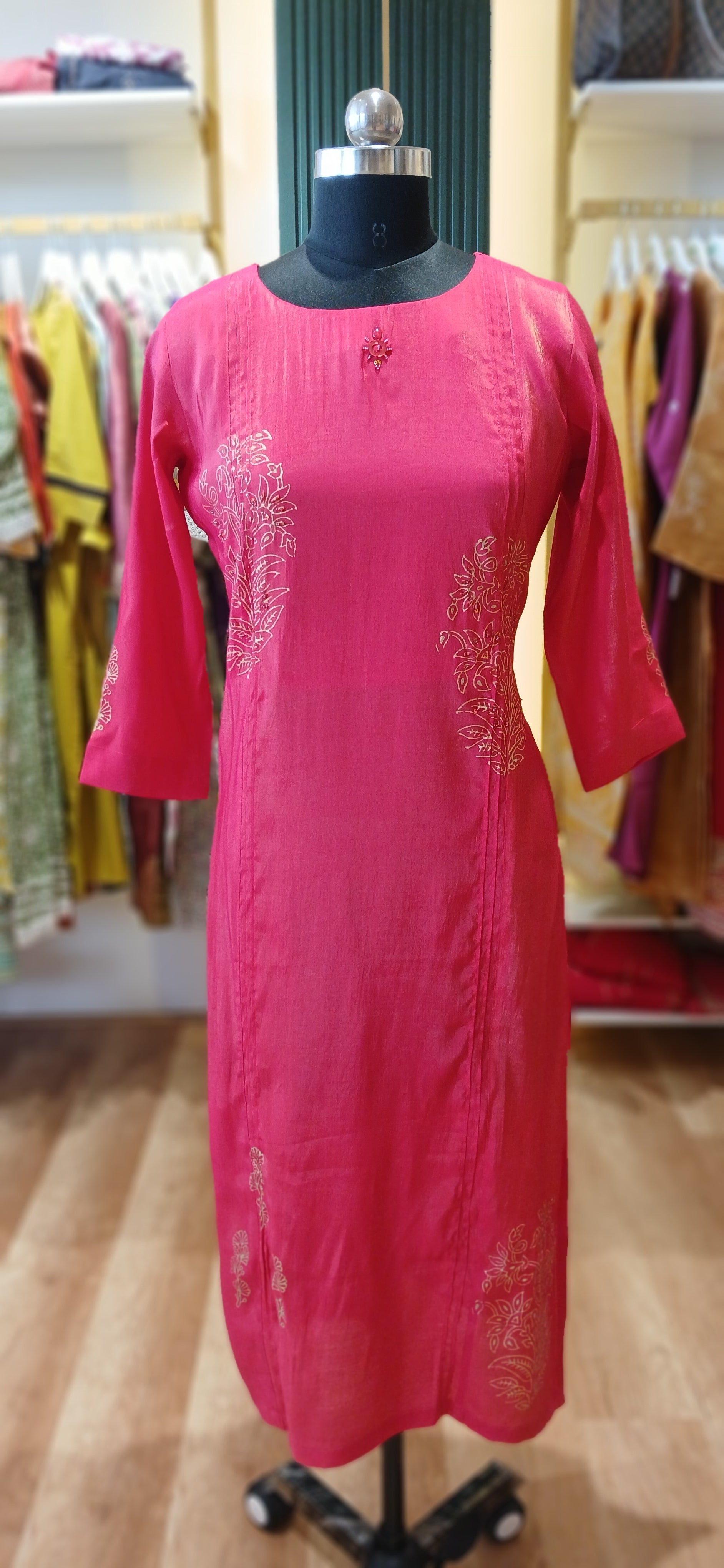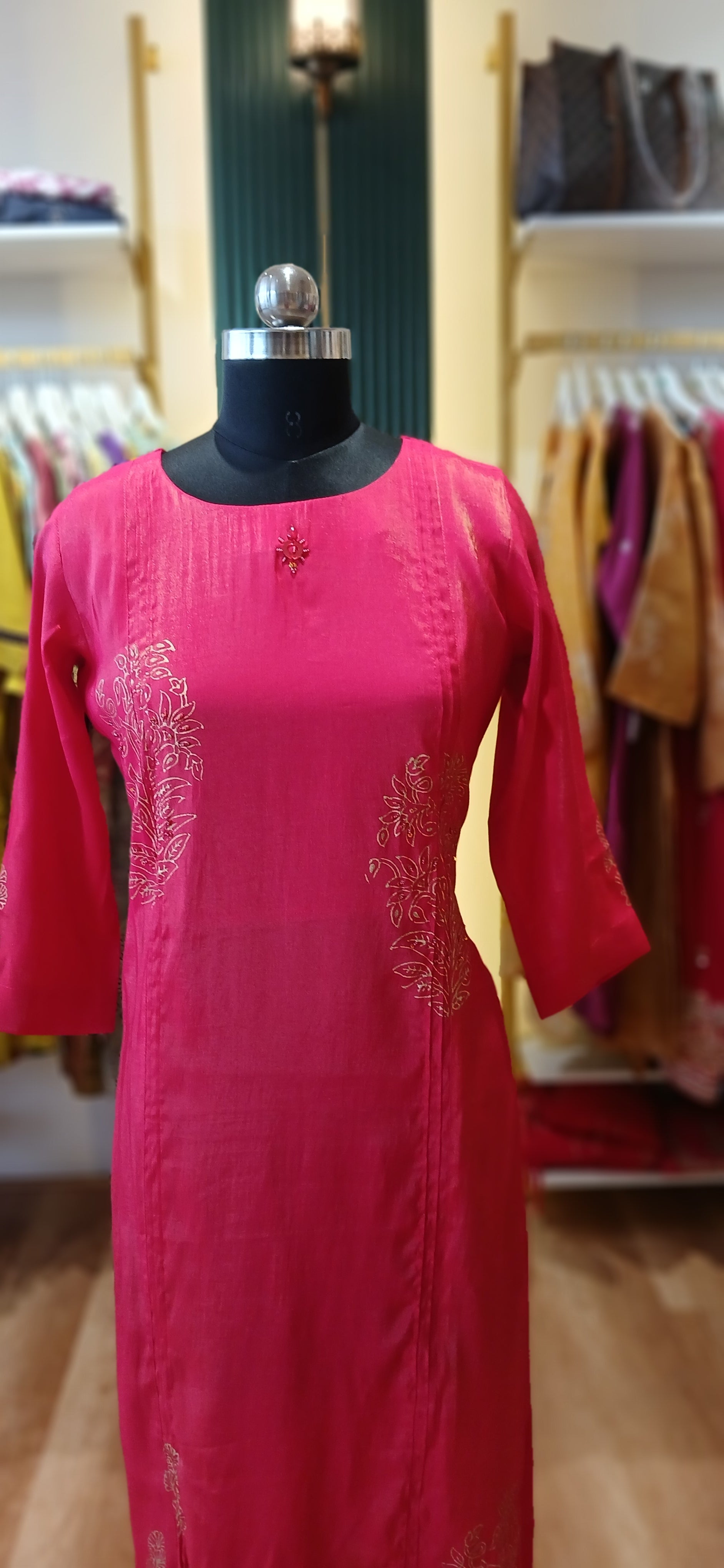 Chiffon shimmer fabric with elegant Golden Printed Kurtis