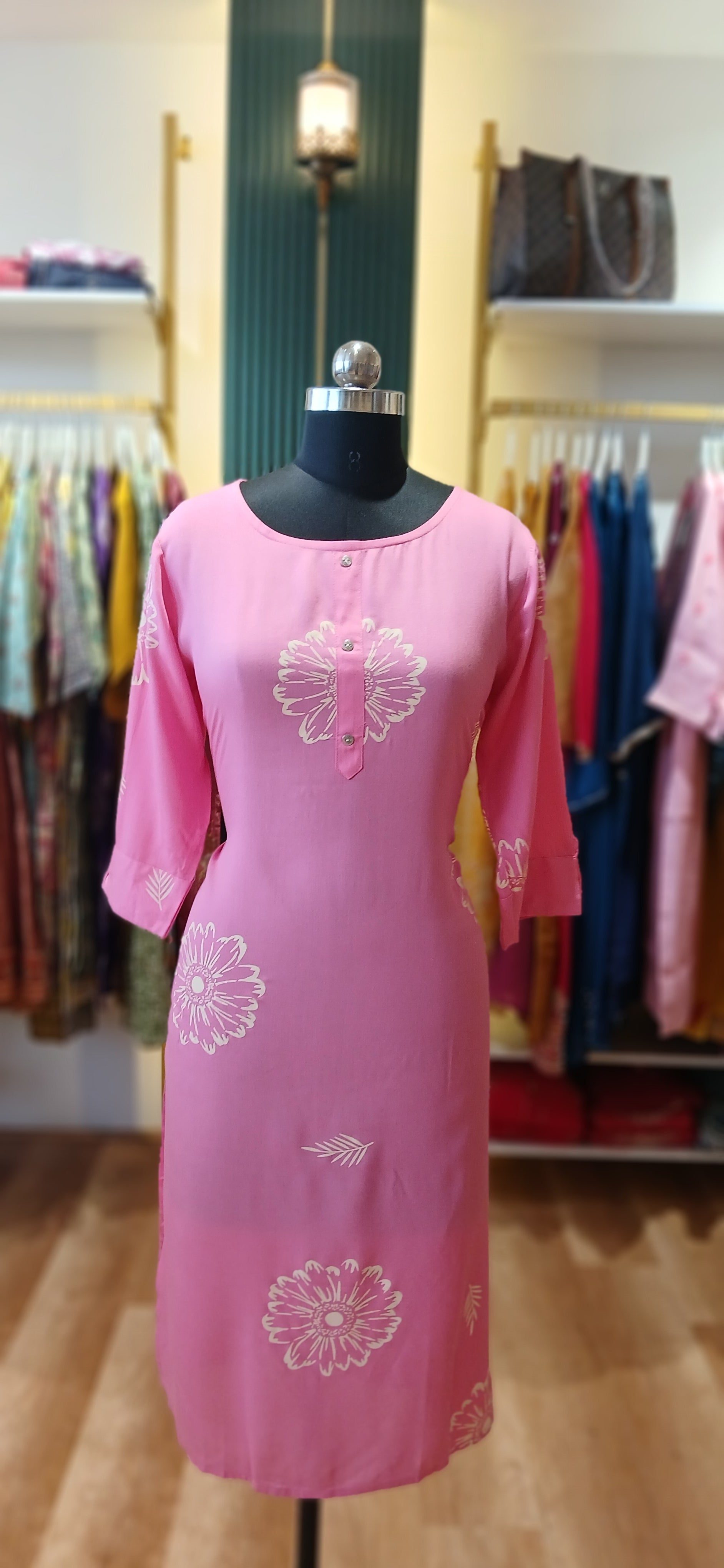 Rayon cotton with self Printed Kurtis