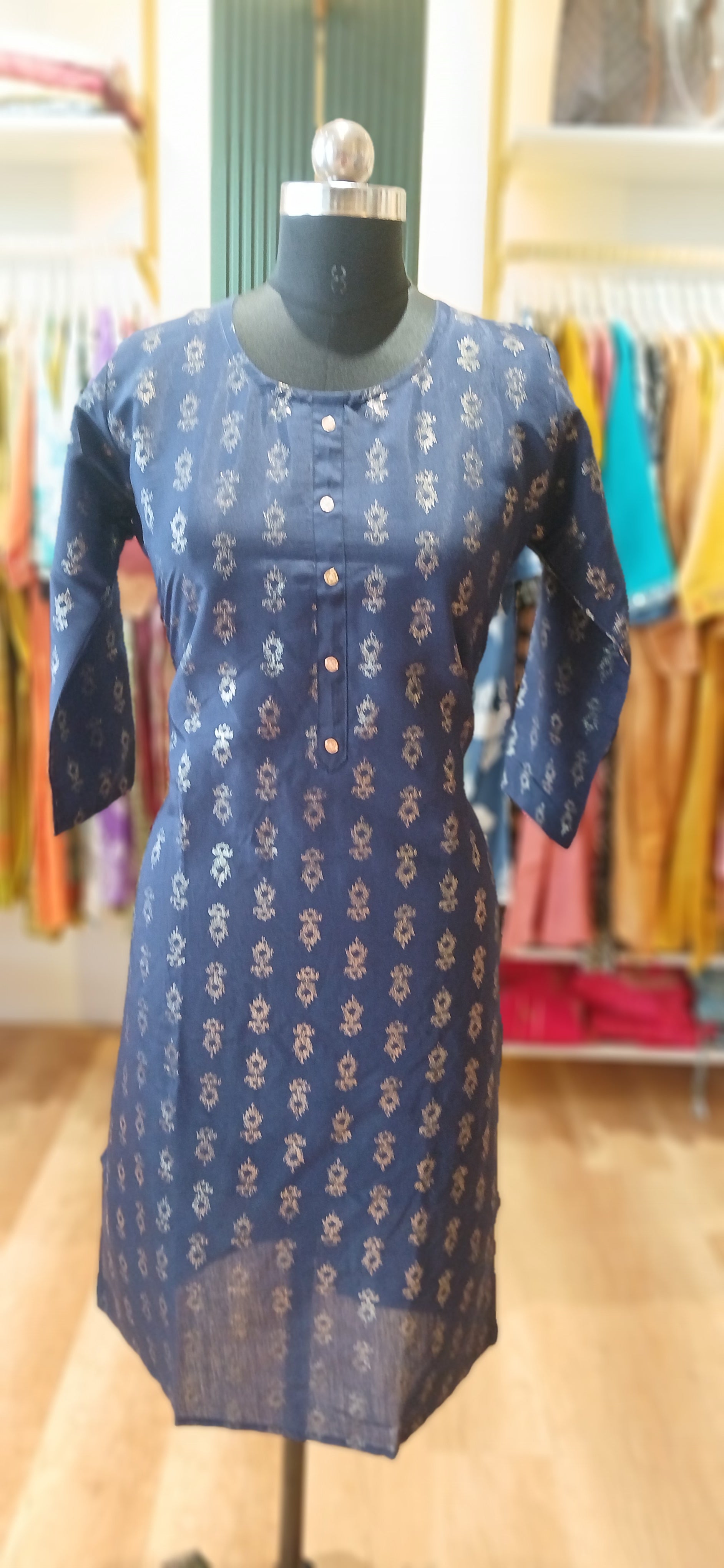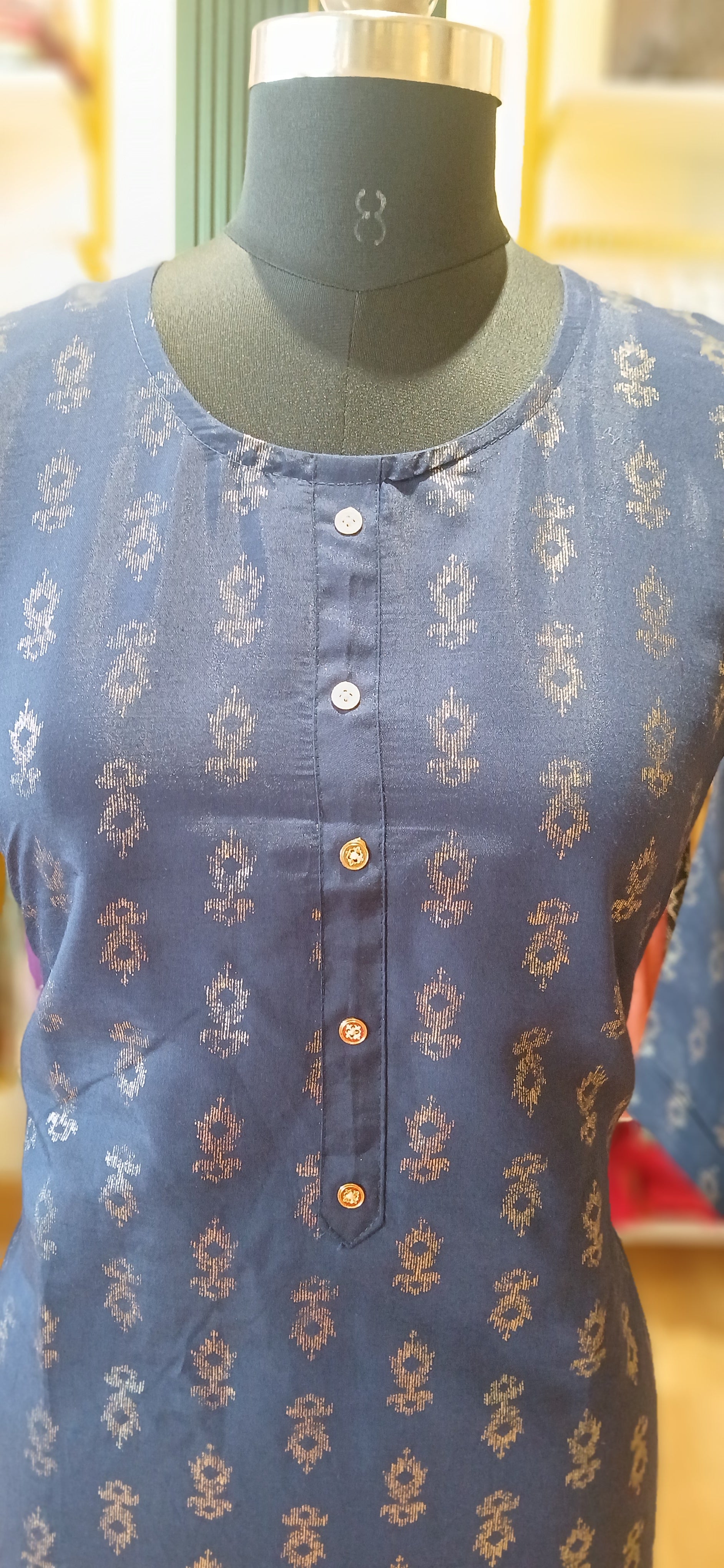 Chanderi silk blend fabric with Golden Printed Kurtis