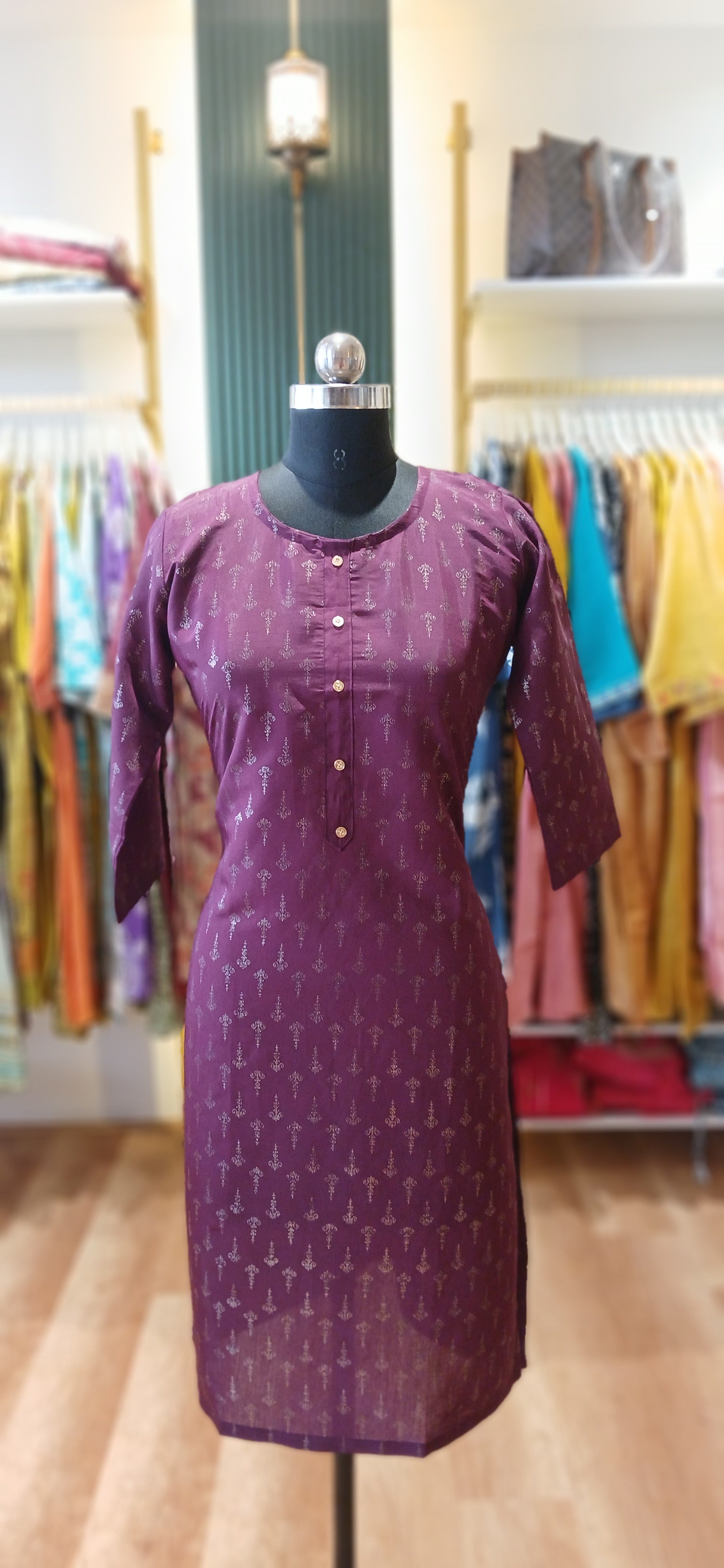 Chanderi silk fabric with Golden Printed Kurtis