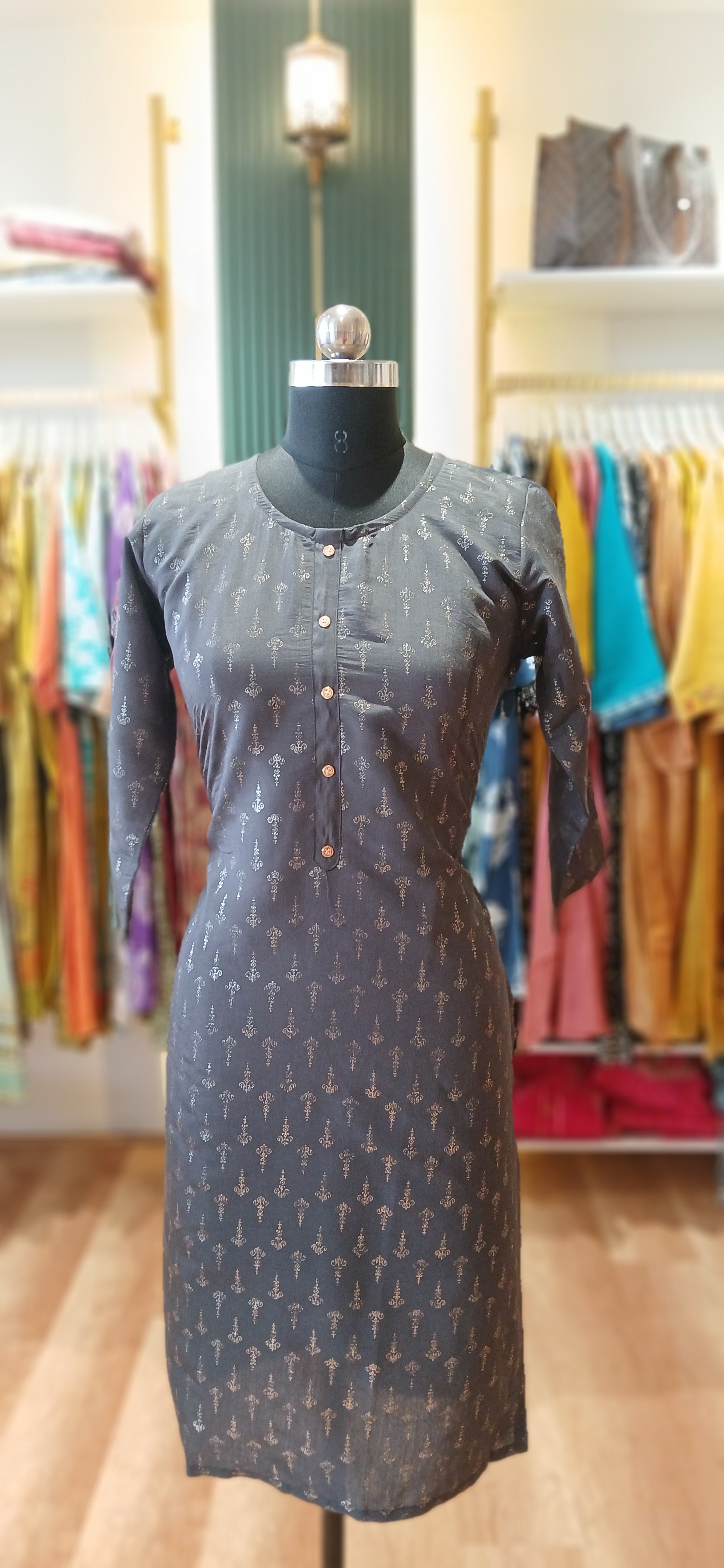 Chanderi silk fabric with Golden Printed Kurtis