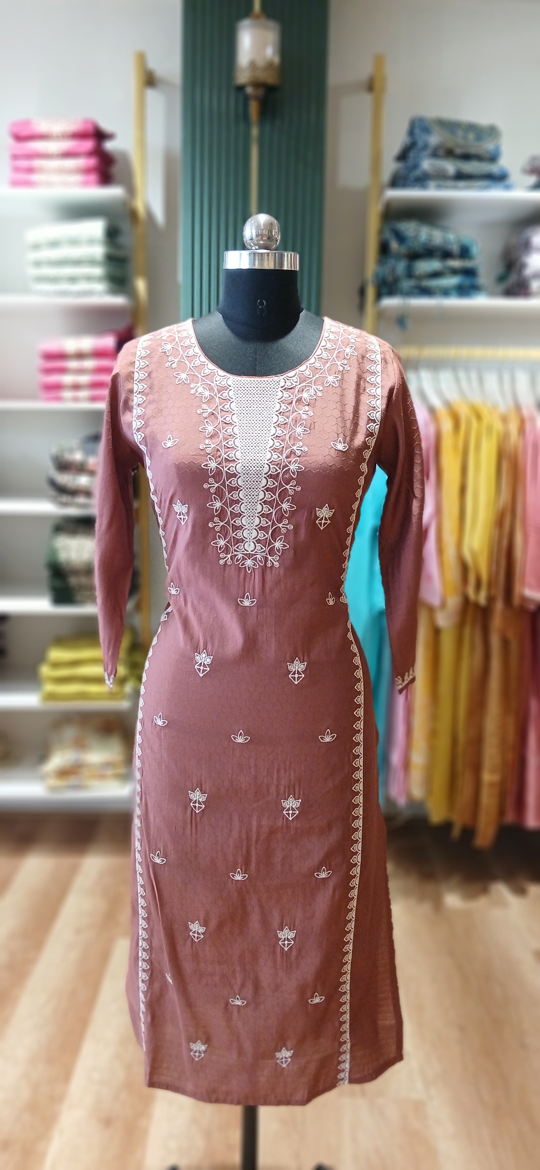 Cotton blend fabric with elegant embroidery designed Kurtis