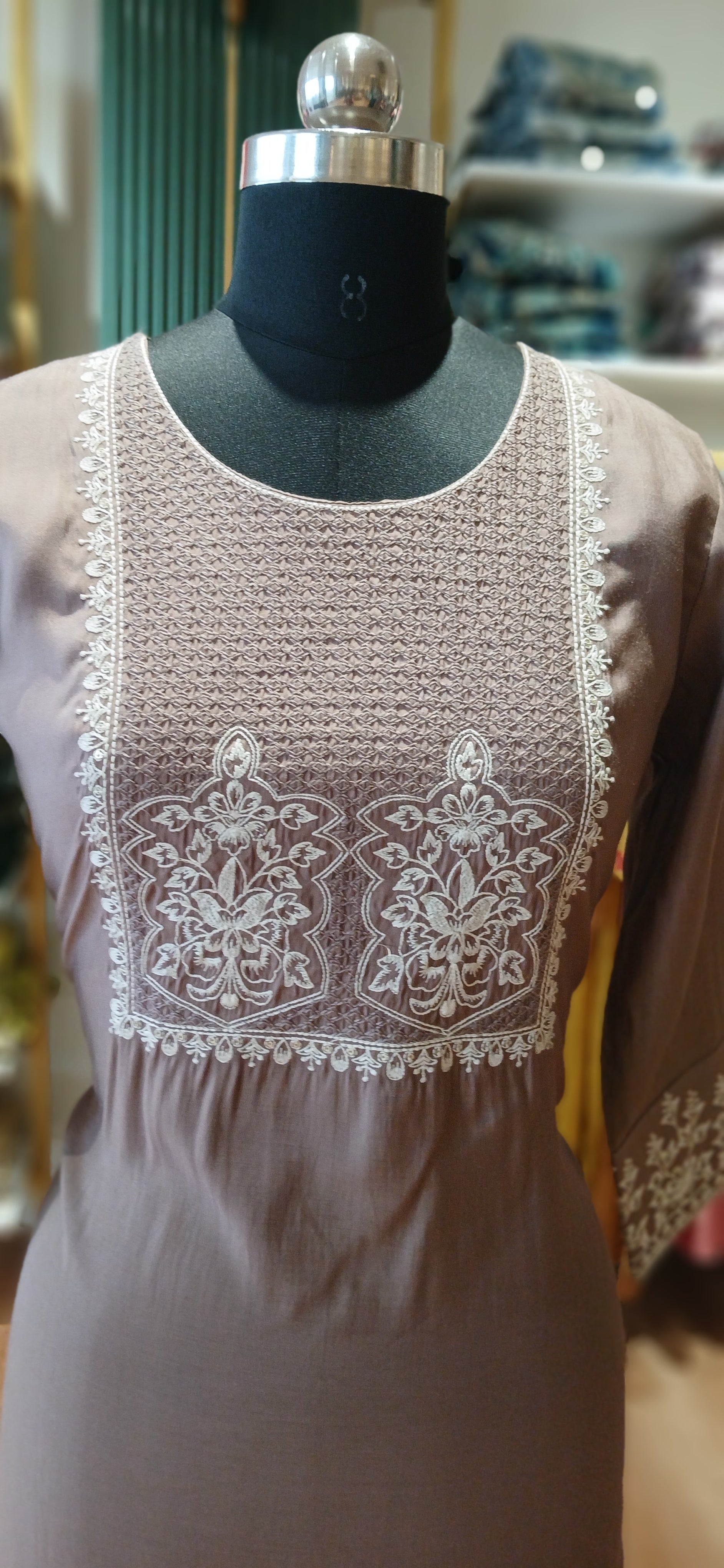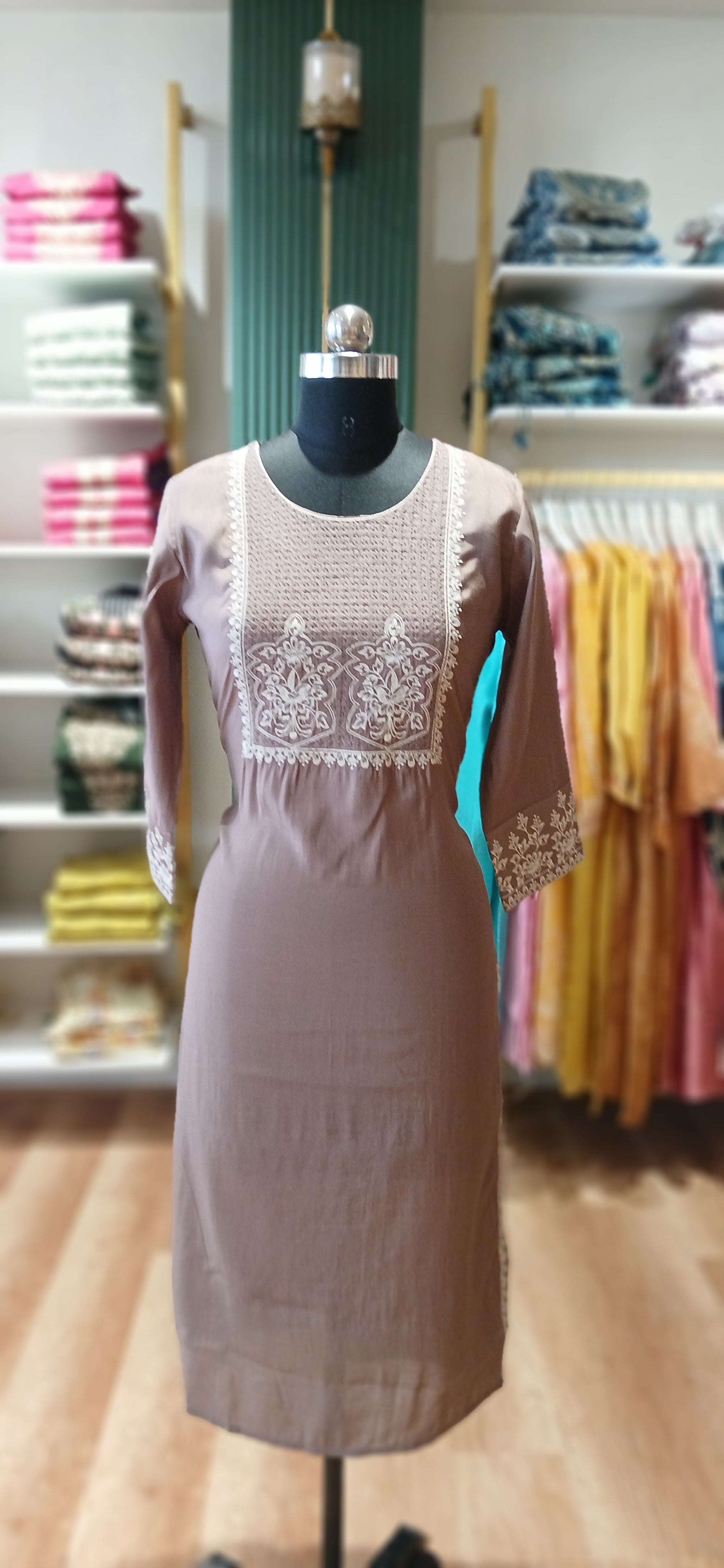Cotton blend fabric with elegant embroidery designed Kurtis