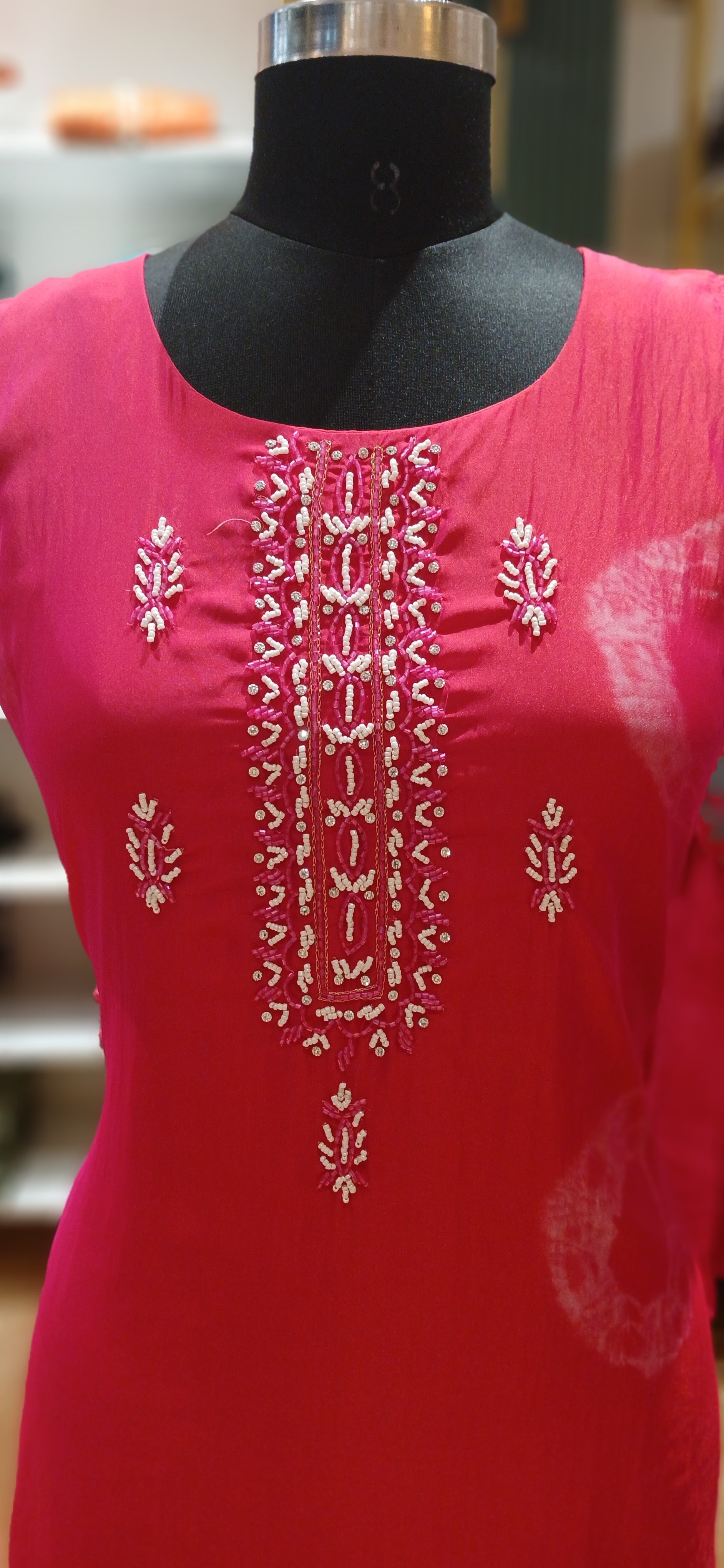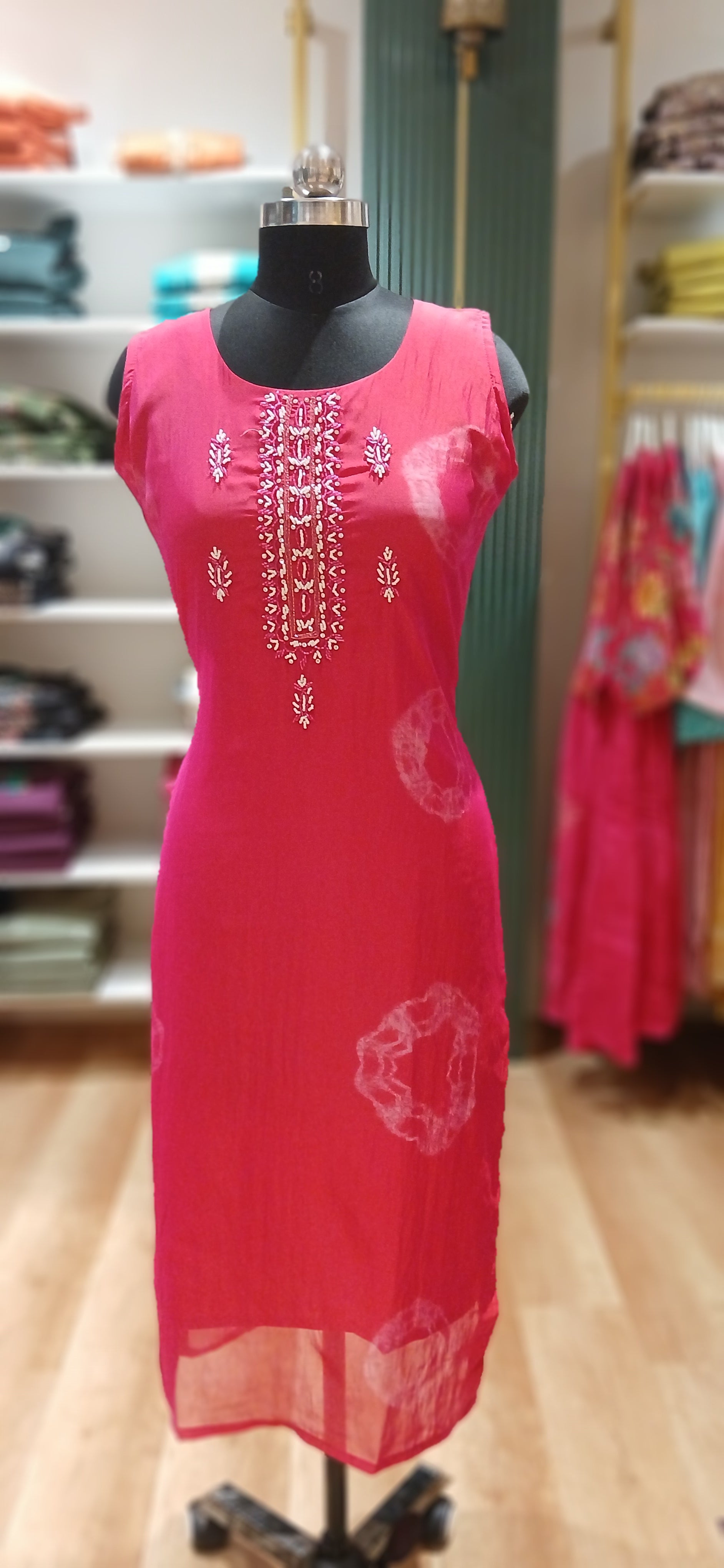 Silk cotton fabric with elegant Aari embroidery designed stylish kurti