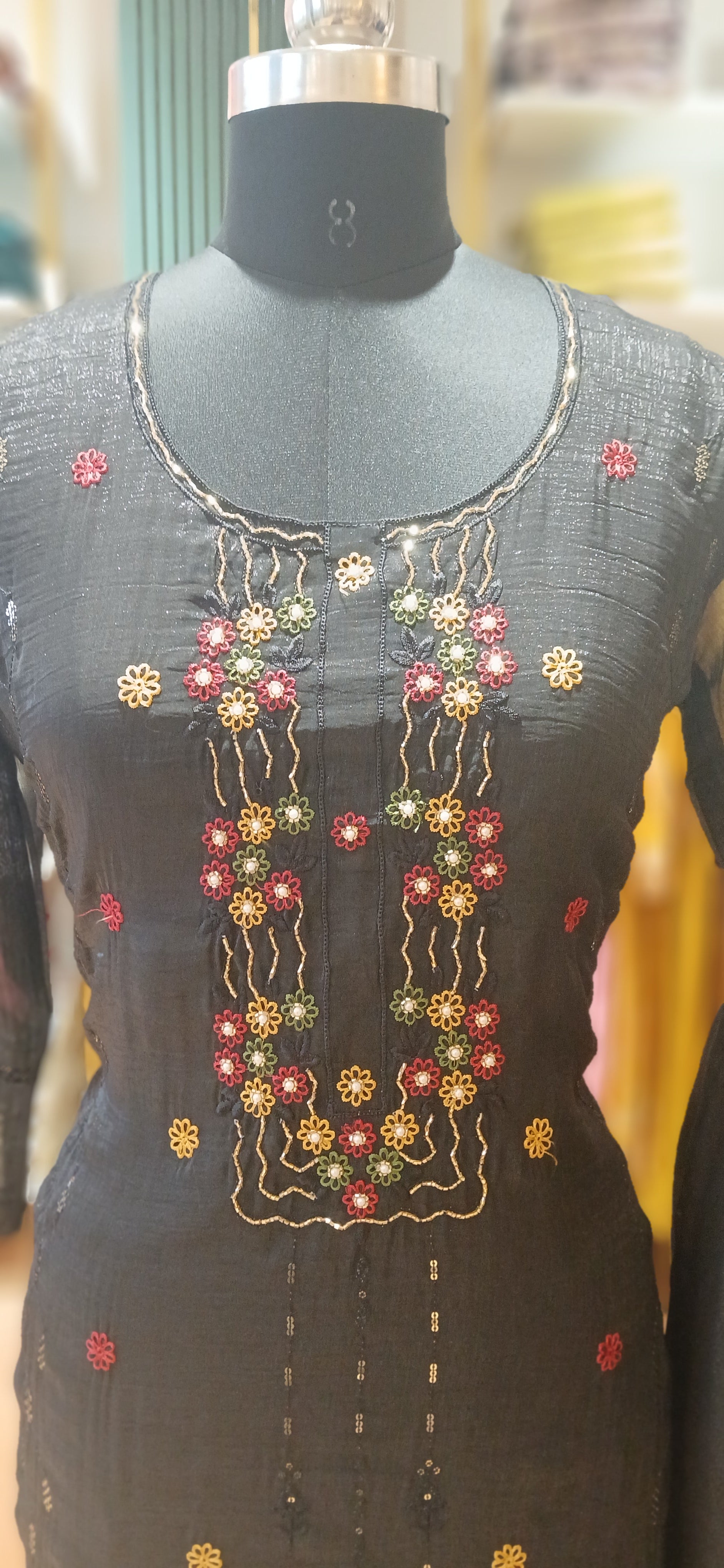 Shimmer silk fabric with elegant embroidery designed salwar Sets