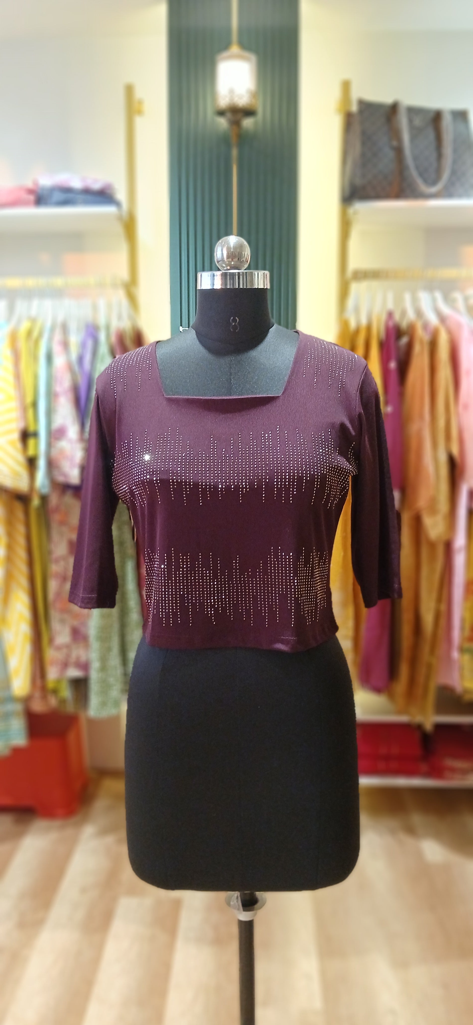 Soften viscose fabric and elegant rhinestone work designed crop top